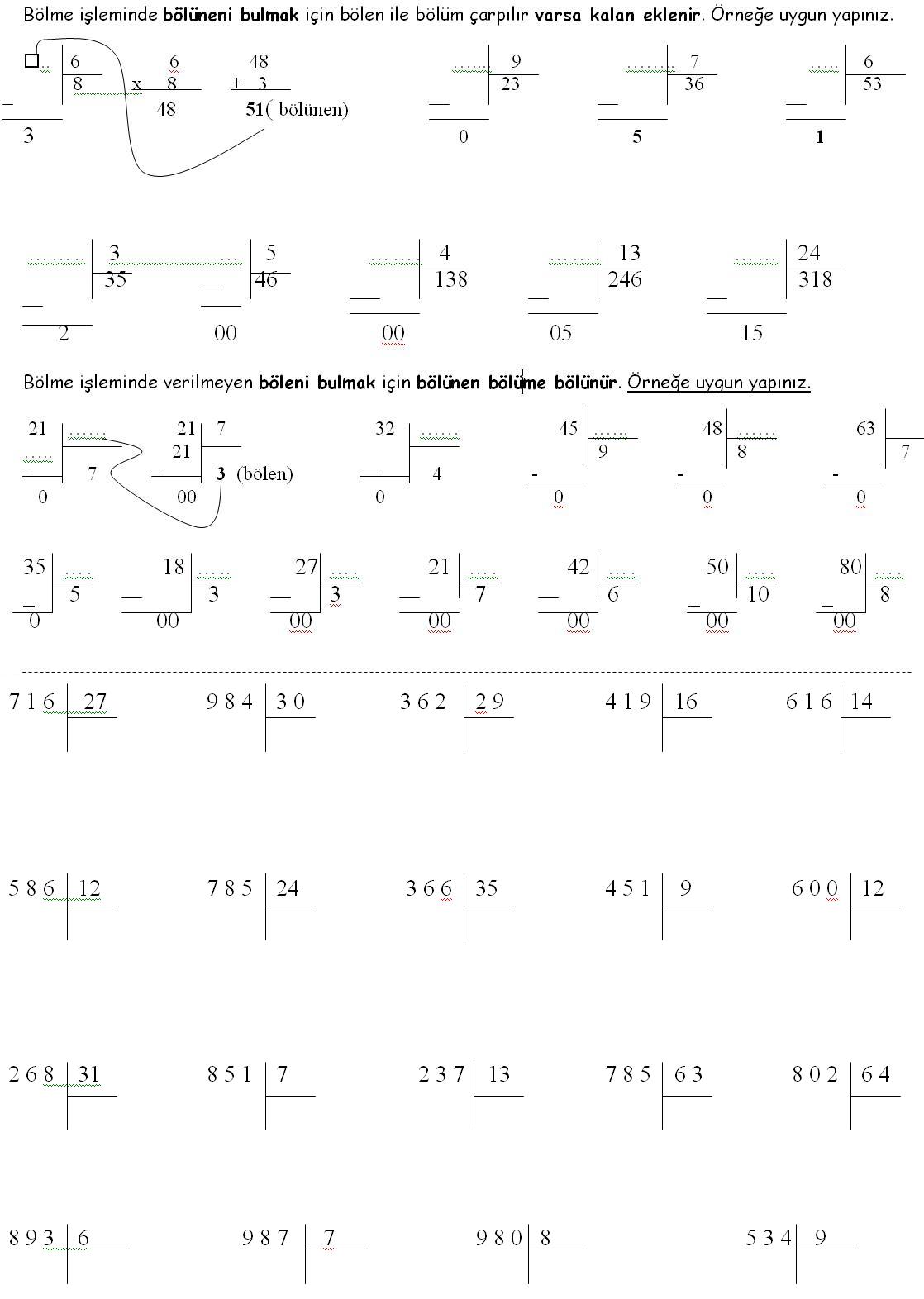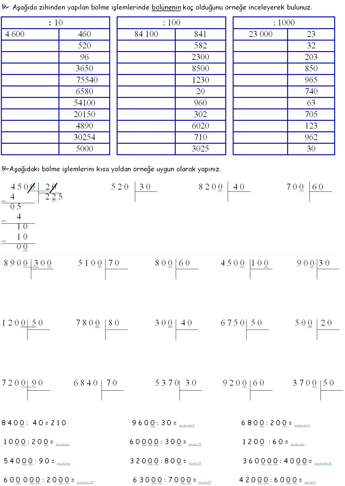 4. Sınıf Matematik Dersi Bölme İşlemleri Hesapla Hesaplamaları Etkinliği Çalışma sayfası kağıdı yaprağı öğrenci çalışma fotokopisi değerlendirme indir bul ara çöz ders konu tekrarı