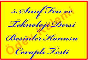 5. Sinif Fen ve Teknoloji Dersi Besinler Cevapli testi